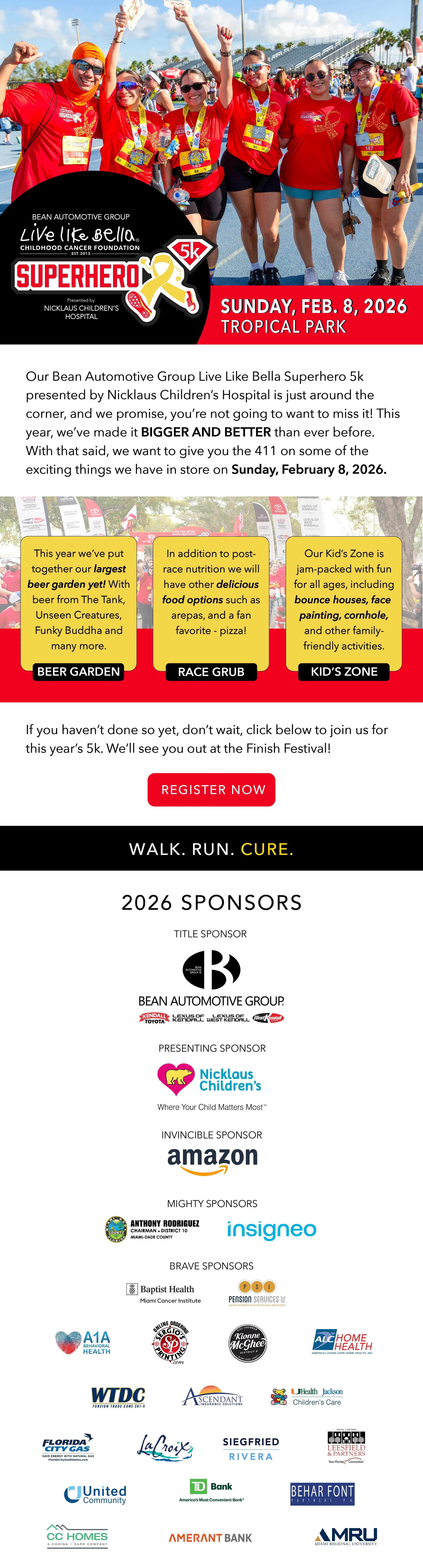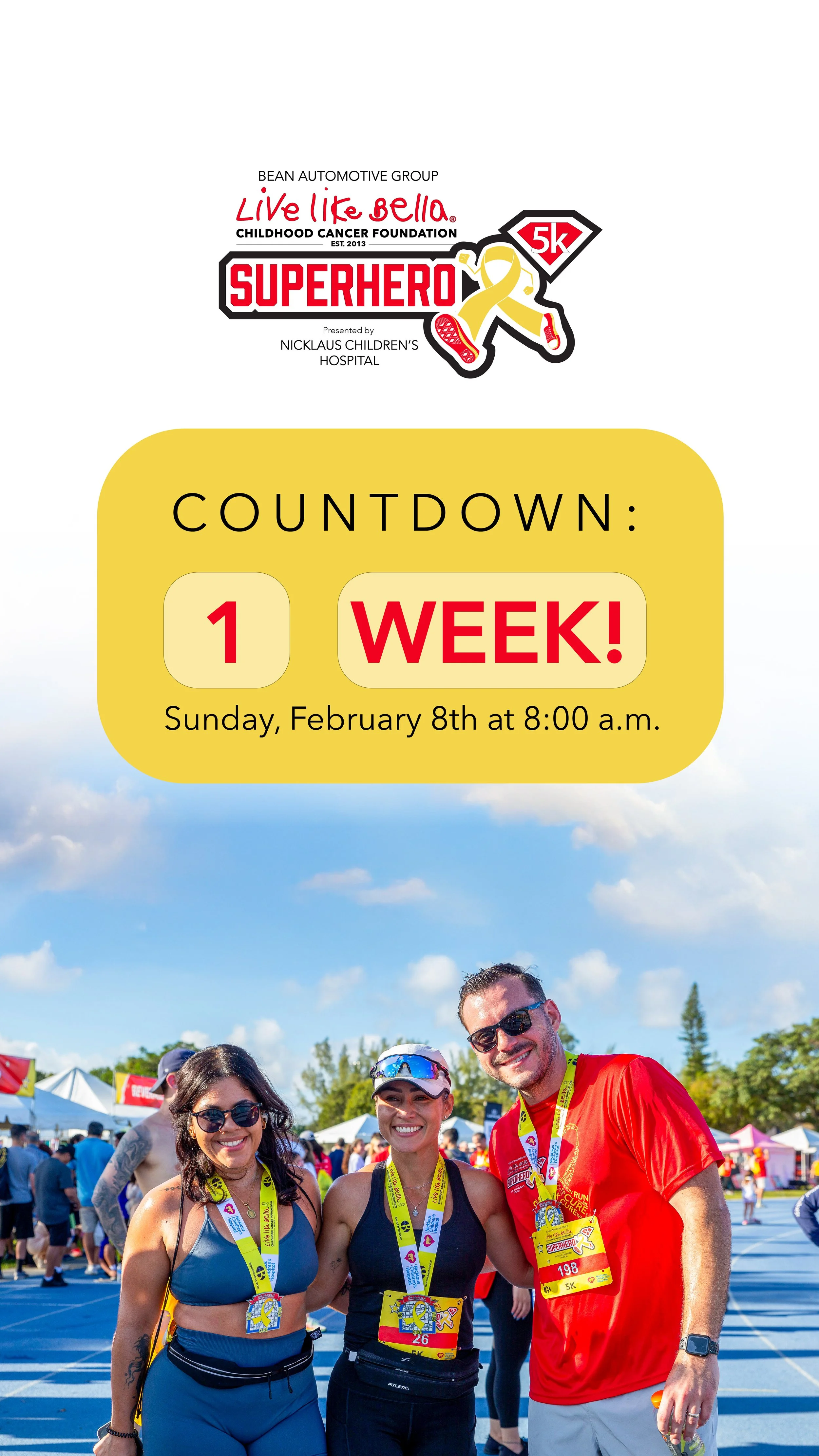 Drive registrations, awareness, and community engagement for the annual Superhero 5k - a family-friendly fundraising event supporting children battling cancer.
